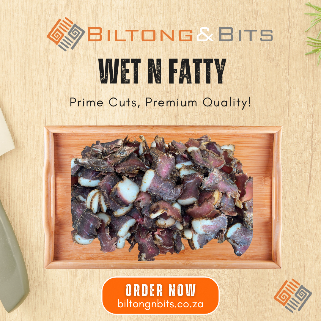 Indulge in the bold taste of Wet & Fatty Biltong, made for those who love their biltong moist, tender, and packed with flavor. Crafted from premium marbled beef, this biltong offers a juicy, melt-in-your-mouth texture with that signature South African spice blend you crave.